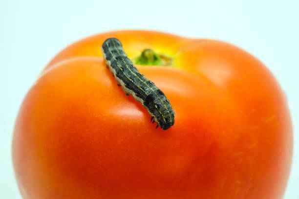 الدودة الخضراء من الآفات الشرهة التي تصيب أوراق وثمار الطماطم، وتتغذى على أنسجة الورقة مسببة ثقوبًا غير منتظمة، مما يقلل من عملية التمثيل الضوئي ويؤثر على جودة الإنتاج.
